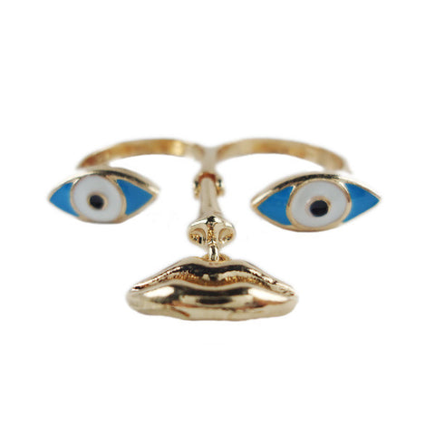 Eyes and Lip Two-Finger Ring
